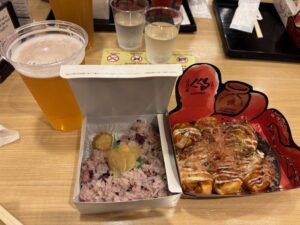 新大阪でお土産とくくるのたこ焼きを食べ、無事に新幹線へ。